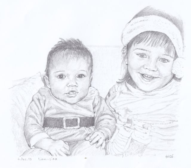 Portrait Lisa & Liam, Dezember 2010-13x15cm-Bleistift